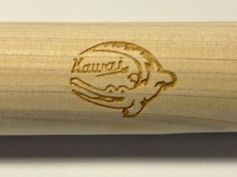 それでも、同じ撥を使い続けていると、「これは自分の撥だな」と感じる瞬間があります 川合木工所では、太鼓の撥をはじめとした木製品に、文字やロゴ、印を刻すことも行っています