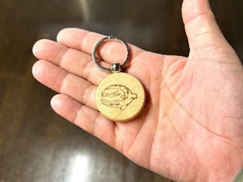 太鼓の撥だけでなく、木製のキーホルダーや記念品など